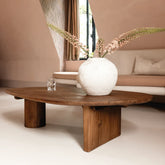 Der Couchtisch Luna spielt mit Kontrasten: Sanfte Kurven treffen auf klare Linien in einem raffinierten, skulpturalen Design. Gefertigt aus massivem, recyceltem Teakholz, verleiht sein einzigartiges Gestell mit einem geraden Bein und einem markanten Zylinder ihm architektonische Raffinesse. Dank seiner organischen Form und der abgerundeten Kanten wird Luna zum einladenden Mittelpunkt, um den sich jeder von allen Seiten gerne versammelt. Ein modernes Statement für Ihr Wohnzimmer.