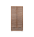 Der hohe und formschöne Kleiderschrank Grace im Mid-Century-Modern-Stil ist gleichermaßen praktisch und vielseitig. Gefertigt aus recyceltem Teakholz, bestechen seine Doppeltüren durch haptisch ansprechende, gewebte Kokosnussblätter und einen Rahmen aus perlenbesetztem Teakholz mit eleganten, stromlinienförmigen Griffen. Im Inneren befinden sich sechs verstellbare Teakholz-Einlegeböden. Eine zeitlose und stilvolle Ergänzung für jedes Schlafzimmer.