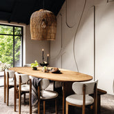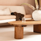 Der Luna-Tisch spielt mit Kontrasten: Klare Linien und sanfte Kurven vereinen sich zu einem raffinierten Design. Gefertigt aus massivem, recyceltem Teakholz, verleiht ihm sein markantes Gestell mit einem geraden und zwei zylindrischen Beinen eine skulpturale Anmutung. Dank seiner organischen Form und der abgerundeten Kanten bietet der Luna-Esstisch bequeme Sitzgelegenheiten rundum. Ein modernes Statement-Piece für jeden Raum.