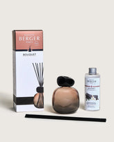 Das außergewöhnliche Design macht das Bouquet Mineral zum perfekten Accessoire für alle, die Exklusivität und Ästhetik schätzen. Ein eleganter Glaskorpus im sanften Nude-Schwarz-Farbverlauf, eingefasst von einem tiefschwarzen Rahmen. Die Kombination aus matten, durchscheinenden und marmorierten Strukturen verleiht ihm eine edle Haptik und faszinierende optische Tiefe. Ein dekoratives Highlight, das Duft und Design harmonisch vereint.