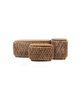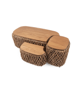 Lieben Sie auch den verspielten Look von Tischen unterschiedlicher Größe? Mit seinem Design, das von den wunderschönen Formen der berühmten Reisfelder Indonesiens inspiriert ist, scheint der Knut Padi Couchtisch aus mehreren Tischen zu bestehen, obwohl er in Wirklichkeit ein kompaktes Stück ist. Der Tisch ist aus handgeflochtenem Abaca-Seil und wiederverwertetem Teakholz gefertigt.