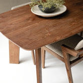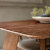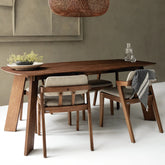 Der Esstisch Grace, erhältlich in zwei Größen, wird traditionell aus recyceltem Teakholz im Mid-Century-Stil gefertigt. Die in zwei Richtungen abgewinkelten Teakholzbeine verleihen ihm eine ansprechende Silhouette. Die massive, abgeschrägte Teakholzplatte bildet die perfekte Tischplatte. Die minimalistische Oberflächenbehandlung unterstreicht die natürliche Schönheit des Teakholzes und macht den Esstisch Grace zum idealen Ort für gesellige Runden.