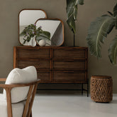 Mit dem auffälligen feinen Geflecht und den interessanten Formen ist die Coco-Kollektion perfekt für alle, die einen eleganten und ausgewogenen Look mögen. Die Stücke der Kollektion bestehen aus wiederverwertetem Teakholz, kombiniert mit Eisen und handgefertigten Geflechten aus der Mittelrippe der Kokospalmenblätter, alles in natürlicher Farbe und Ausführung.