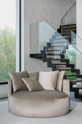 Die sanft geschwungene Silhouette kombiniert Komfort mit Design und bringt Leichtigkeit in jedes Interieur. Dank einer großen Auswahl an Stoffen und Farben lässt sich der Sessel ganz individuell anpassen.