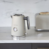 Genießen Sie Ihr Heißgetränk mit Stil – die RM Classic Wasserkocher-Serie von Riviera Maison verbindet elegantes Design mit hochwertiger Funktionalität. Der glatt gearbeitete Edelstahl-Korpus in Taupe- oder Flax-Farbton sitzt auf einer glänzenden silbernen Basis, ergänzt durch einen kontrastierenden schwarzen Griff – zusammen ergibt das eine harmonische und moderne Ergänzung für Ihre Küche.