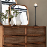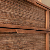 Dieser elegante und zugleich äußerst praktische Schrank wurde so entworfen und gefertigt, dass er sich harmonisch in jedes Zimmer einfügt. Er besteht aus einer handgefertigten Kombination aus recyceltem Teakholz und handgewebten Schubladen mit Kokosnussblatt-Einlagen und Soft-Close-System. Der wunderschöne Schrank vereint effizienten Stauraum mit warmer Eleganz und fügt sich sowohl in traditionelle als auch in moderne Wohnungen perfekt ein.