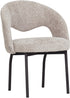 Der hochwertige Stoffbezug in Beige (Sand) fühlt sich angenehm weich an und sorgt für ein besonders komfortables Sitzgefühl. Die ergonomisch geformte Sitzfläche und die leicht gebogene Rückenlehne machen den Arca zu einem bequemen Esszimmerstuhl, der sich perfekt für lange Abende am Esstisch eignet.