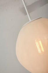 Die künstlerische Form der Lampe verleiht dem Ambiente einen modernen Touch, während das klare Metallgestell für einen minimalistischen Look sorgt. Diese Deckenleuchte kombiniert gekonnt zeitgenössisches Design mit einem Hauch von künstlerischem Flair – ein echtes Highlight für jeden Raum.