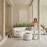 Gestalten Sie Ihr perfektes Zuhause mit dem modularen Sofa San Remo Dieses Sofa wurde in Zusammenarbeit mit Anna Nooshin entworfen. Der edle Bouclé-Stoff in Naturgrau verleiht dem Sofa einen modernen Look, und die organischen Formen der Elemente machen es zu einem einzigartigen Möbelstück! Entspannen Sie sich und genießen Sie höchsten Wohnkomfort. Kombinieren Sie es mit dem passenden Sessel und Hocker für einen eleganten Look.